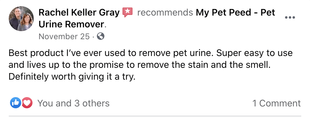 Best product I’ve ever used to remove pet urine. Super easy to use and lives up to the promise to remove the stain and the smell. Definitely worth giving it a try.