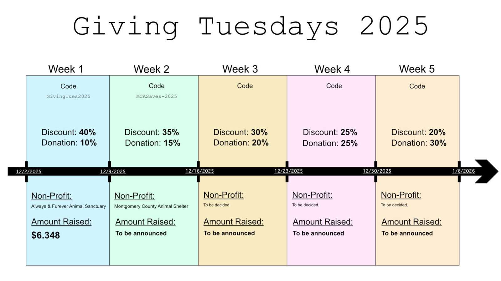 15% of all fundraising-sales will go to Montgomery Country Animal Shelter, in Conroe Texas.