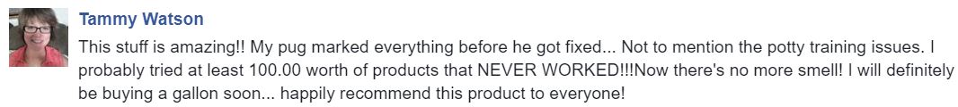 This stuff is amazing!! My pug marked everything before he got fixed... Not to mention the potty training issues. I probably tried at least 100.00 worth of products that NEVER WORKED!!!Now there's no more smell! I will definitely be buying a gallon soon... happily recommend this product to everyone!