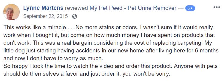 This works like a miracle......No more stains or odors. I wasn't sure if it would really work when I bought it, but come on how much money I have spent on products that don't work. This was a real bargain considering the cost of replacing carpeting. My little dog just starting having accidents in our new home after living here for 6 months and now I don't have to worry as much.